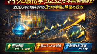 株式投資 マイクロ波化学(9232)が本命株に急浮上!2026年に期待される3つの事業と株価の行方 マイクロ波化学(9232)の株価動向と将来性を徹底解説。脱炭素・省エネ・新素材の3大テーマを持つ注目グロース株の強みとリスク、投資戦略まで分かりやすく紹介します。 2026.04.03 株式投資